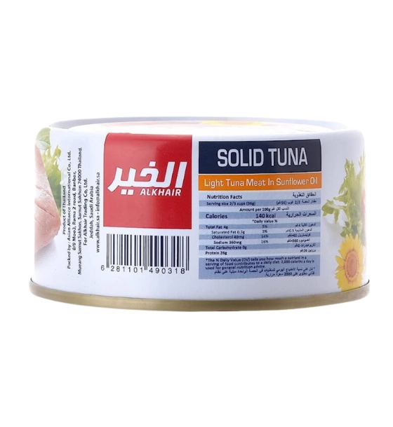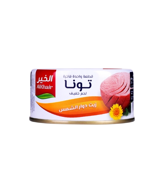 تقدم لك تونة الخير عبوة 95 جم من لحم التونة المميزة والمعبّأة بعناية في زيت دوار الشمس، عالية الجودة وذات طعم غني ومثالي للسلطات، السندويشات، أو كوجبة خفيفة غنية بالبروتين. تحتوي على قطع لحم تونة متماسكة والمحضّرة لتُقدم لك تجربة غذائية متوازنة وسهلة التحضير.